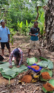 En la práctica, llevamos a cabo el cuarteo de muestras y la medición del pH del suelo en una parcela con cacao criollo. Los resultados indicaron la necesidad de aplicar un corrector de suelo (cal agrícola) para mejorar el crecimiento de las plantas de cacao. Este proceso refleja nuestro compromiso con la salud y la productividad a largo plazo de nuestras plantaciones, asegurando un entorno sostenible para las generaciones venideras.